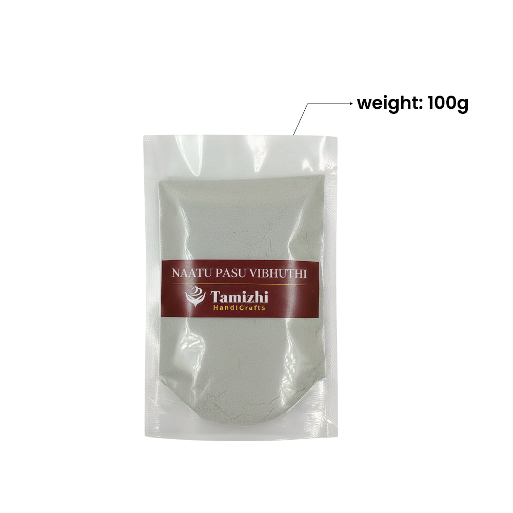 Naatu Maatu Vibuthi (100g): Sacred vibuthi prepared in traditional style, suitable for daily pooja rituals.